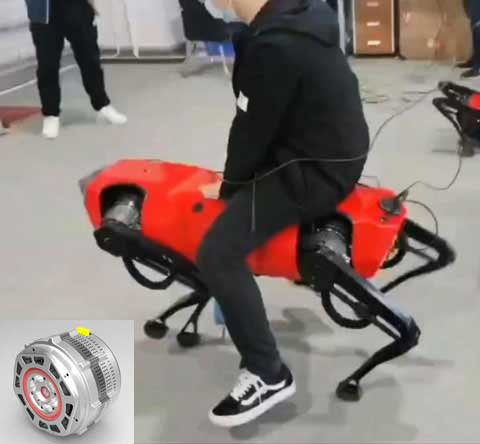 全電驅動12自由度大型仿生機器人關節,單電機功率6kW,峰值扭矩1200Nm,輸出轉速120rpm,單電機重量10kg.